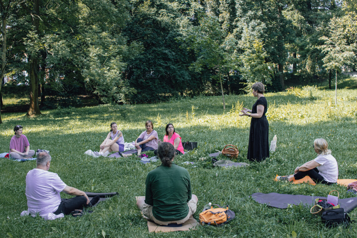 Oba spotkania prowadziły nas także przez uważne skanowanie ciała, intuicyjny taniec i symboliczne mapowanie emocji z pomocą dźwięku deszczownicy. Były to procesy głębokie i uwalniające – pozwalające poczuć, że ciało może być przyjacielem i przewodnikiem, a nie tylko narzędziem.